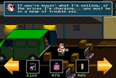 本作没有内购系统,但是加入了商店与道具系统,玩家在关卡中打到敌人可以获得金钱,在关卡选择界面,玩家可以购买补给道具和升级角色能量,例如生命值、移动速度、攻击威力等等,如果打不过敌人的话可以去前面的关卡多赚赚钱再来升级能力。