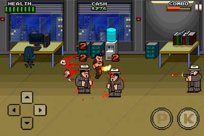 下面说说游戏的特色,前面提到过,游戏控制中没有跳跃这一选项,但是游戏加了连招系统这一比较有特点的战斗系统,在屏幕右上角会有 combo条,combo值会不断上升,当combo条充满则可以发动一次连招,所谓连招系统其实就是发动一次比普通攻击威力更大也更华丽的连续攻击招式。连招系统的发动非常简单,通过P (拳)K(脚)两个按键的不同三次组合就可以发动不同类型的连招,需要注意的是连招的种类是根据关卡进度逐步解锁的。玩家可以也页面查看连招的组合方式和未解锁的连招。