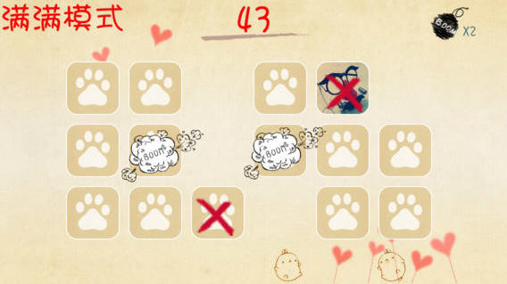 满满模式(新):在没有时间限定的情况下,游戏界面的卡牌会逐渐增加,玩家必须眼疾手快地将卡牌消除,如果卡牌填满整个界面,那游戏就结束了~~~