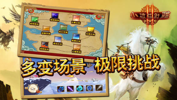 在《射雕2》中,游戏的场景数达到了空前的10大场景,依次包括山脉、森林、峡谷、平原、河道、蜂巢、冰川、雪山、荒漠和火山十大场景。此版本中,游戏总共有1500小关,我觉得只有少数英雄才能通关哦!3.丰富的道具技能