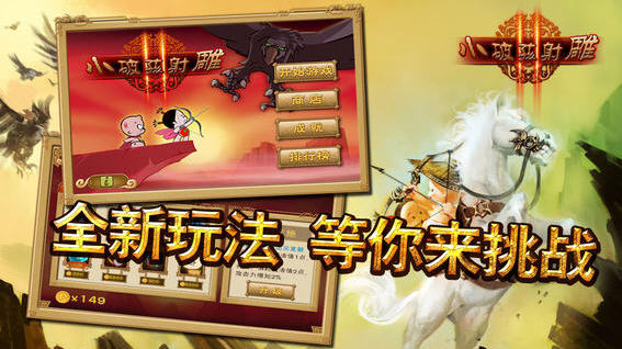 忘掉射雕1中的简单画面吧,我们现在对游戏图片进行了细致的制作和完善,游戏画面质量达到顶级水平哦!更加入了大量超赞粒子特效,相信一定让你过目难忘。2.全新的关卡场景