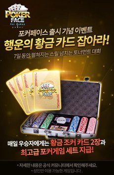「扑克脸 for Kakao 」中有3中韩国扑克牌玩法,可以在每日有限时间同等条件下进行排行查看自己的事例,也可以体验该类游戏特有的紧张感。10月10日前每日排名第一的玩家可以获得下图中左数第一个礼品套装,更多活动可以在游戏内确认。