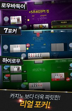 《扑克脸 for Kakao(????? for Kakao)》是一款特色棋牌类手机游戏,由韩国游戏厂商 PATI Games 全新推出,玩法丰富,画面精美,加入游戏中体验多种桌游的乐趣吧!