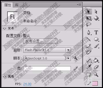1、启动FLASH,新建文档,我们界面的右边这里。